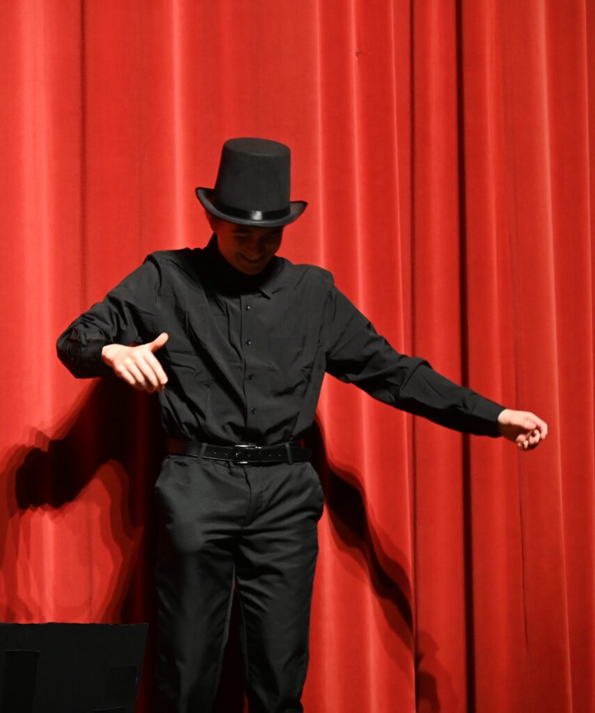 Canton stars as “John Darling” in the JHS production of The Neverland Project. While the production is funny and an interesting twist on the classic Peter Pan, I am in awe of Canton’s dedication and perseverance. He juggles six AP classes (a FULL college load, if you will), plus his commitments to choir and Latin, all while progressing through VHSL state competition with “Mother of Exiles” which still is rehearsing and performing.