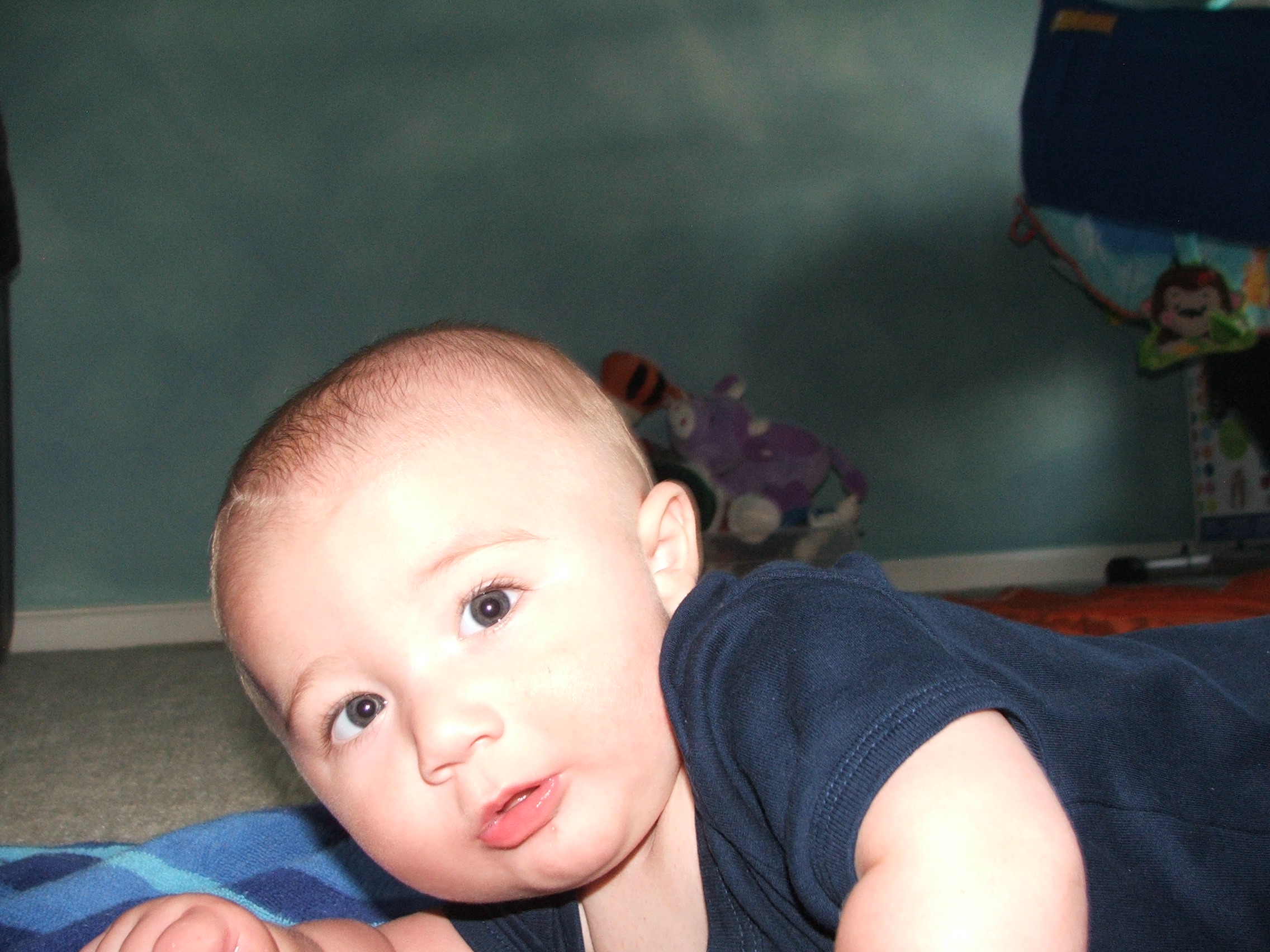 Speaking of growing up, I’ve been busy trying to roll over from my back to my belly but haven’t quite got there yet. I really can roll over that way but choose not to – it’s no fun being on my belly!